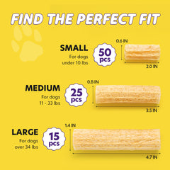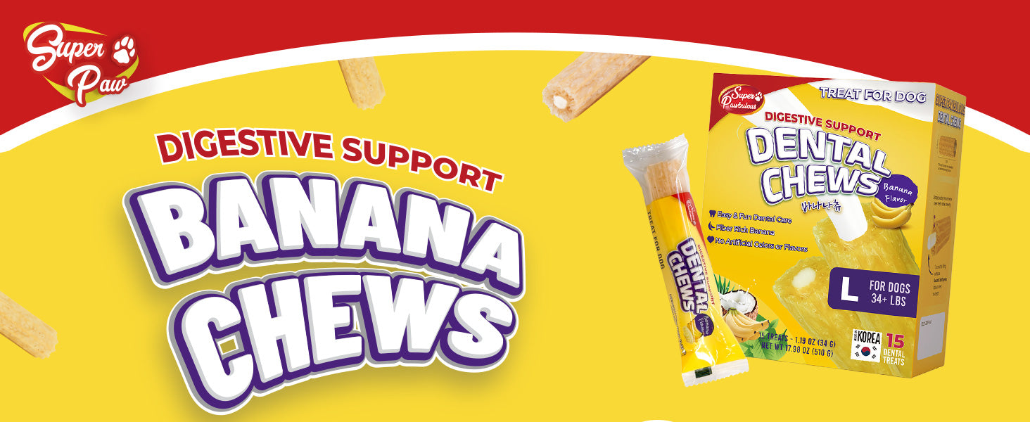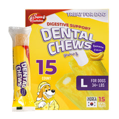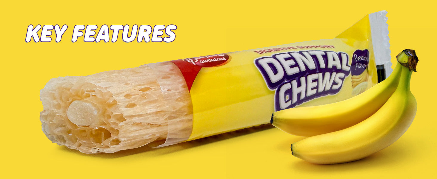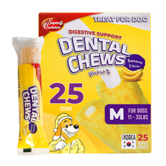 - DIGESTIVE SUPPORT WITH BANANA FIBER: Crafted with fiber-rich banana, this dog dental chew flavored treat supports healthy digestion and balanced gut health while keeping oral care enjoyable. It’s a delicious way to nurture your dog’s tummy and teeth together. This medium size comes in 25 treats that is perfect for for dogs 11–33 lbs.